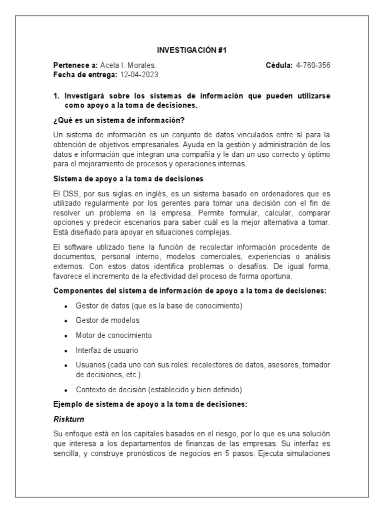 1. Investigará sobre los sistemas de información que pueden utilizarse