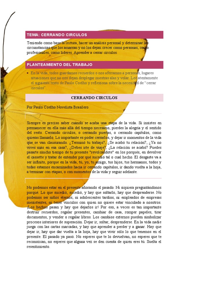 el siguiente texto de Paulo Coelho y reflexiona sobre la necesidad de “cerrar