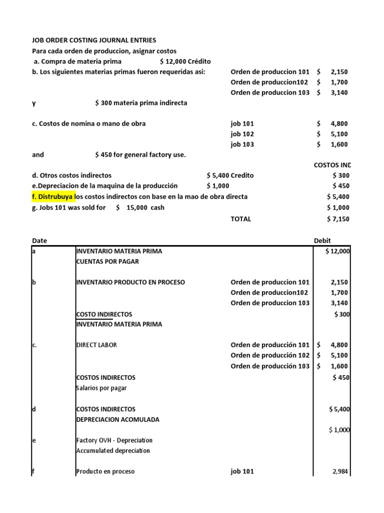 f. Distrubuya los costos indirectos con base en la mao de obra directa $ 5,400