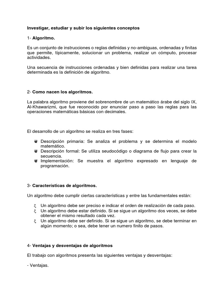Un algoritmo debe ser preciso e indicar el orden de realización de cada paso.