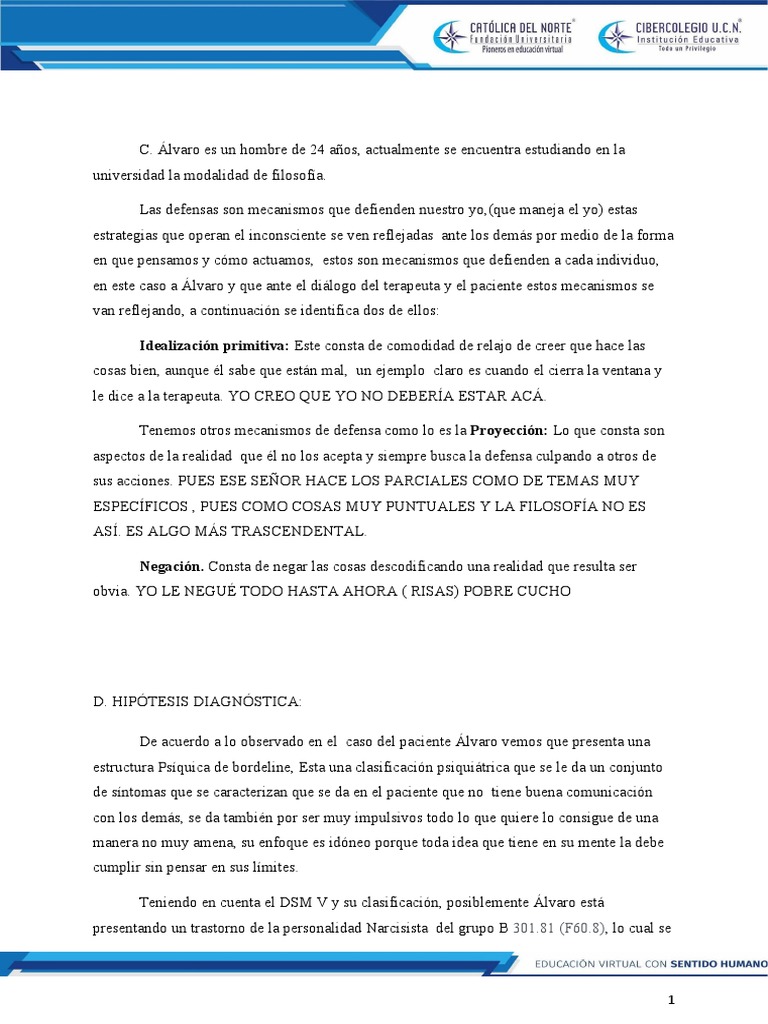 en este caso a Álvaro y que ante el diálogo del terapeuta y el paciente estos mecanismos se