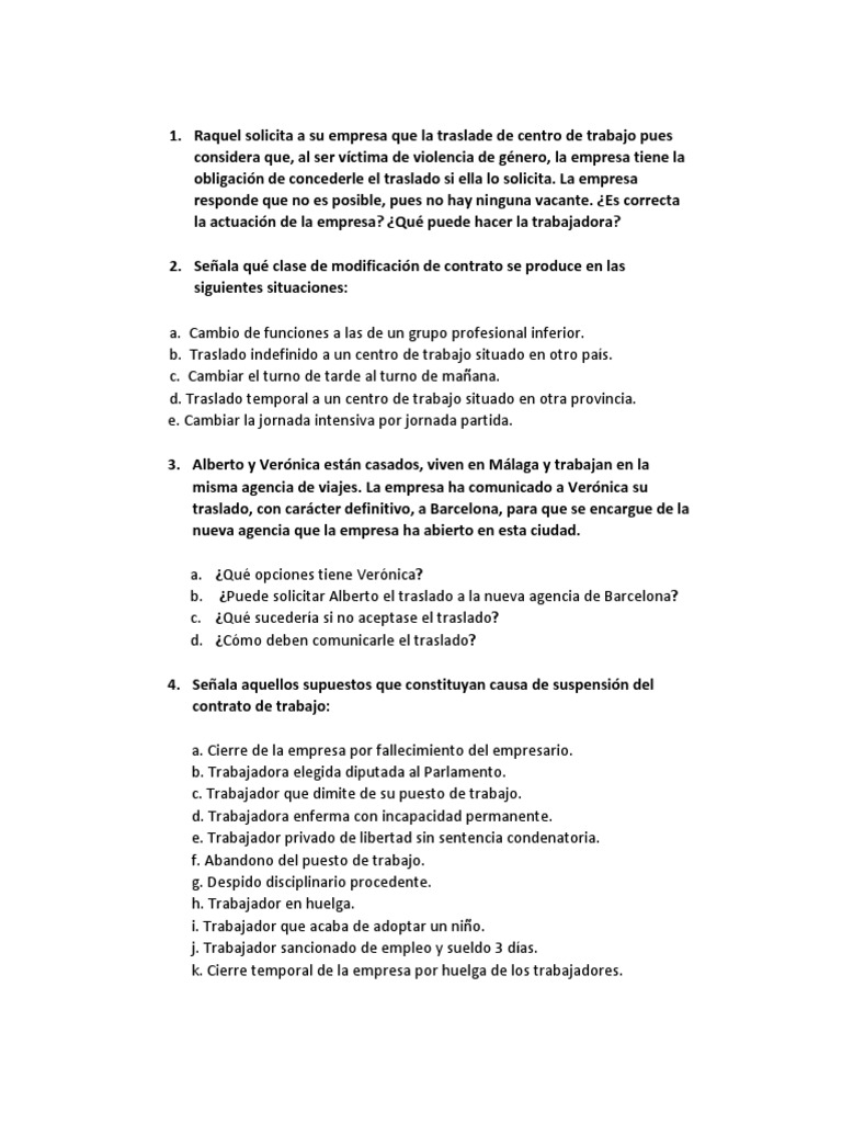 c. ¿Qué sucedería si no aceptase el traslado?