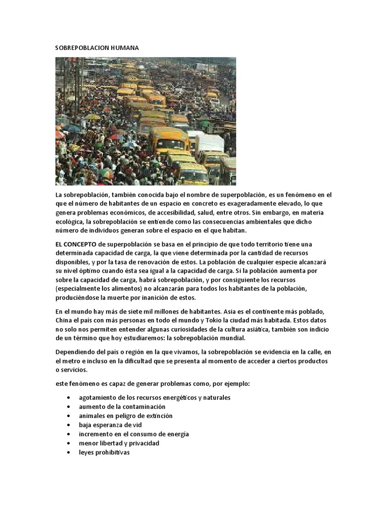 consecuencias de la sobrepoblación, entre las cuales destacan: