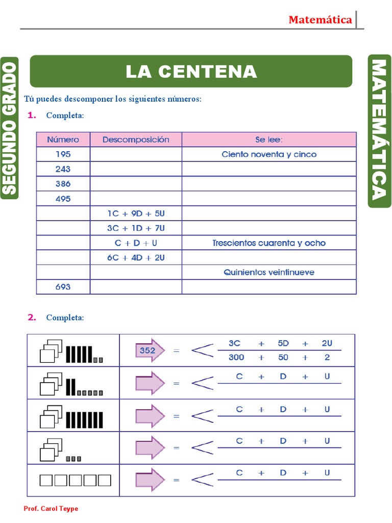 5 ____ + 7D +2U Quinientos setenta y dos.