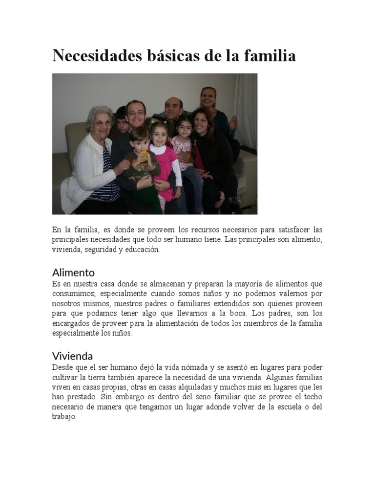 En la familia, es donde se proveen los recursos necesarios para satisfacer las