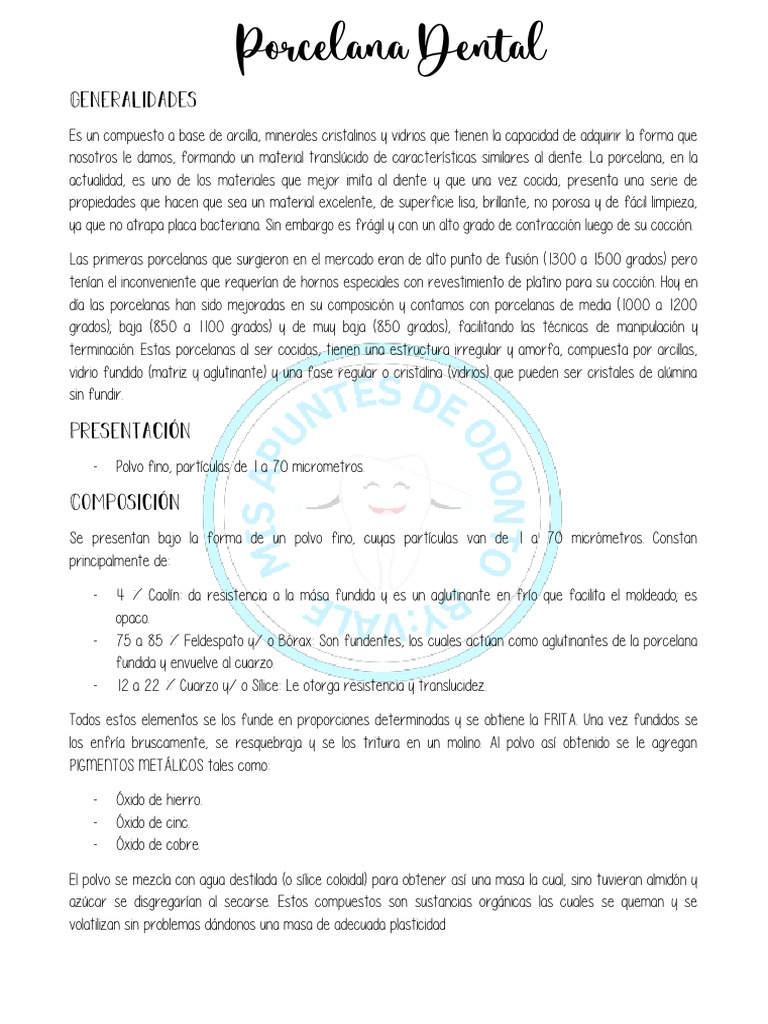 actualidad, es uno de los materiales que mejor imita al diente y que una vez cocida, presenta una serie de