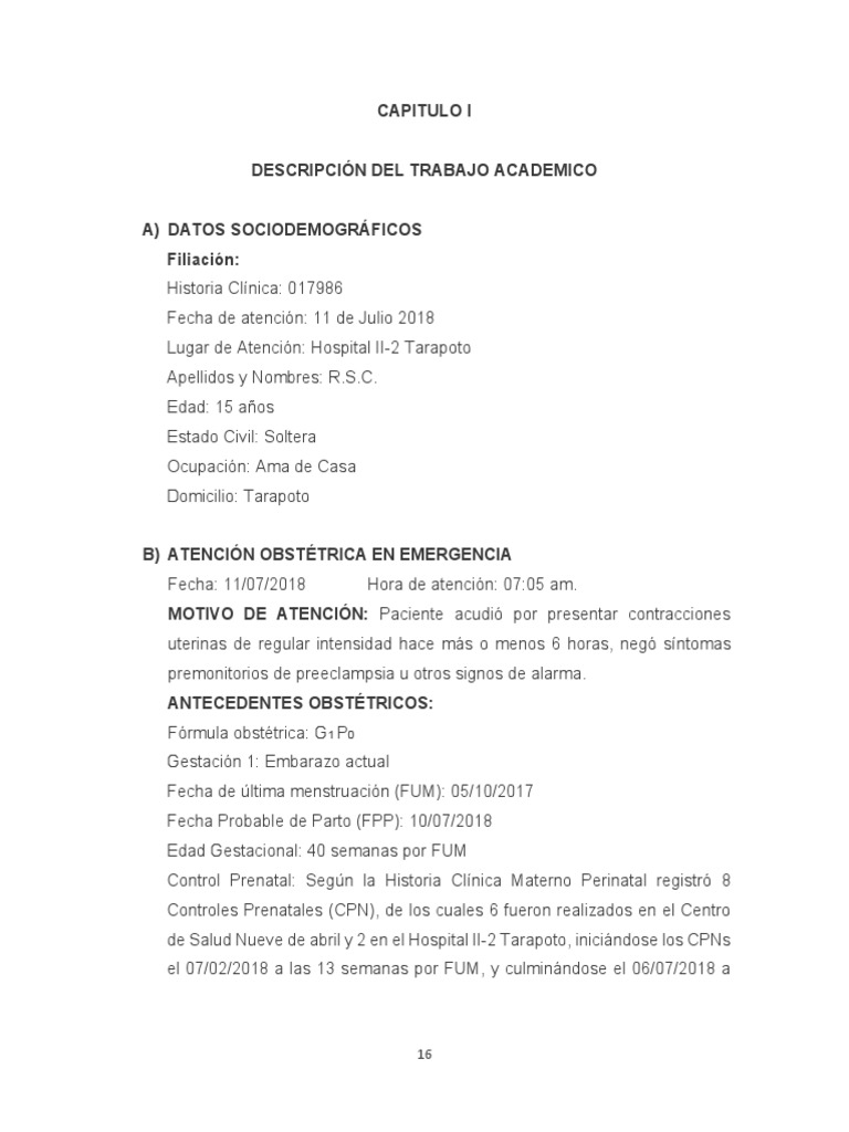 Fecha: 06/07/2018 Diagnóstico: Gestante de 39 semanas por FUM.