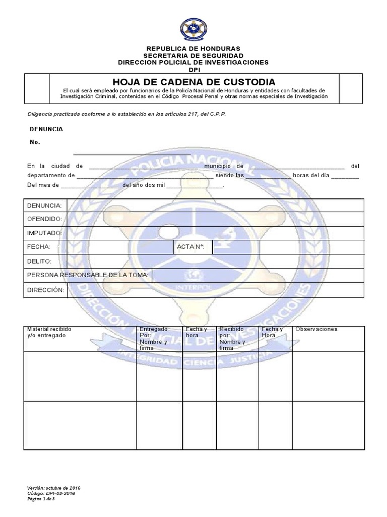 HOJA DE CADENA DE CUSTODIA