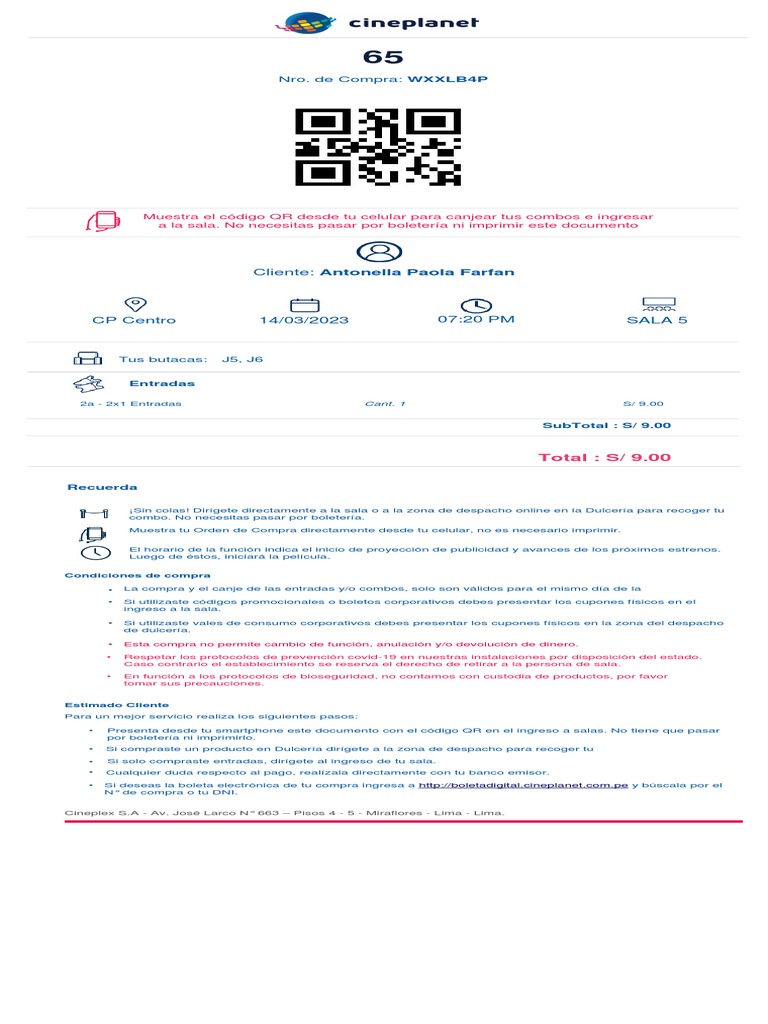 • Presenta desde tu smartphone este documento con el código QR en el ingreso a salas. No tiene que pasar