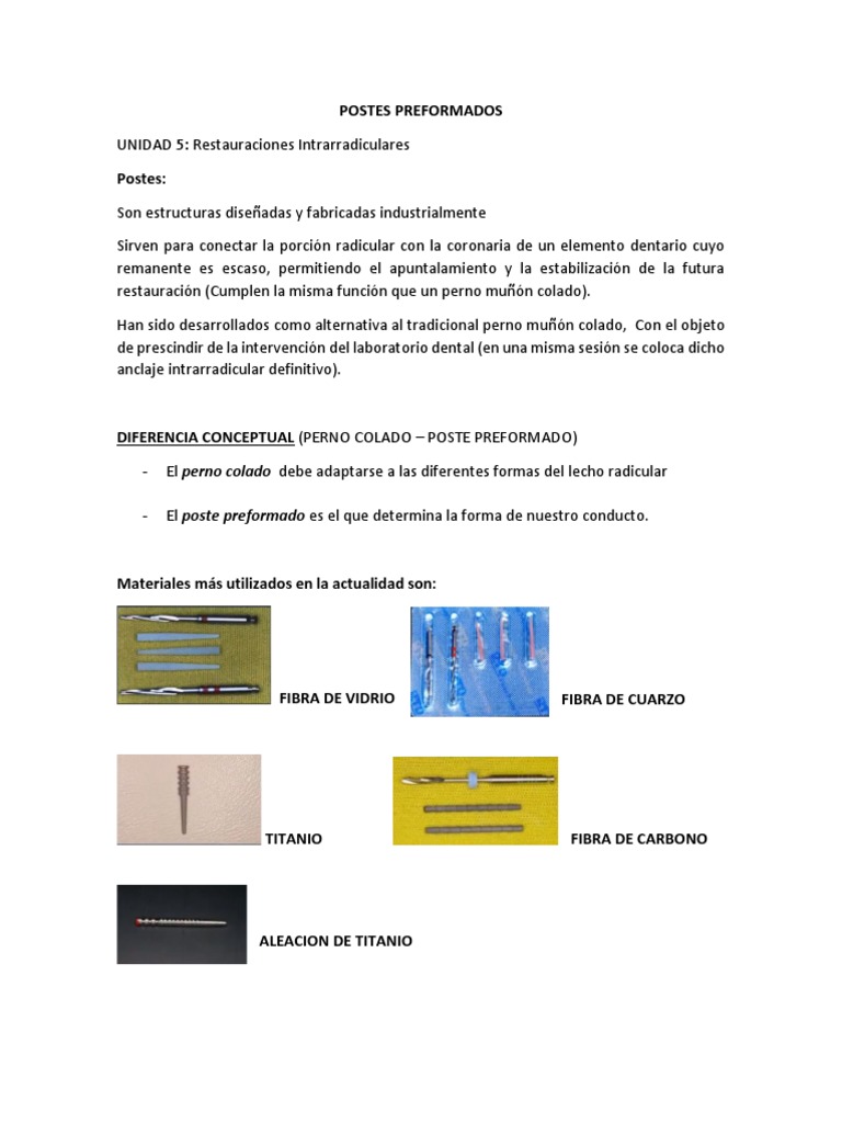 - El poste preformado es el que determina la forma de nuestro conducto.