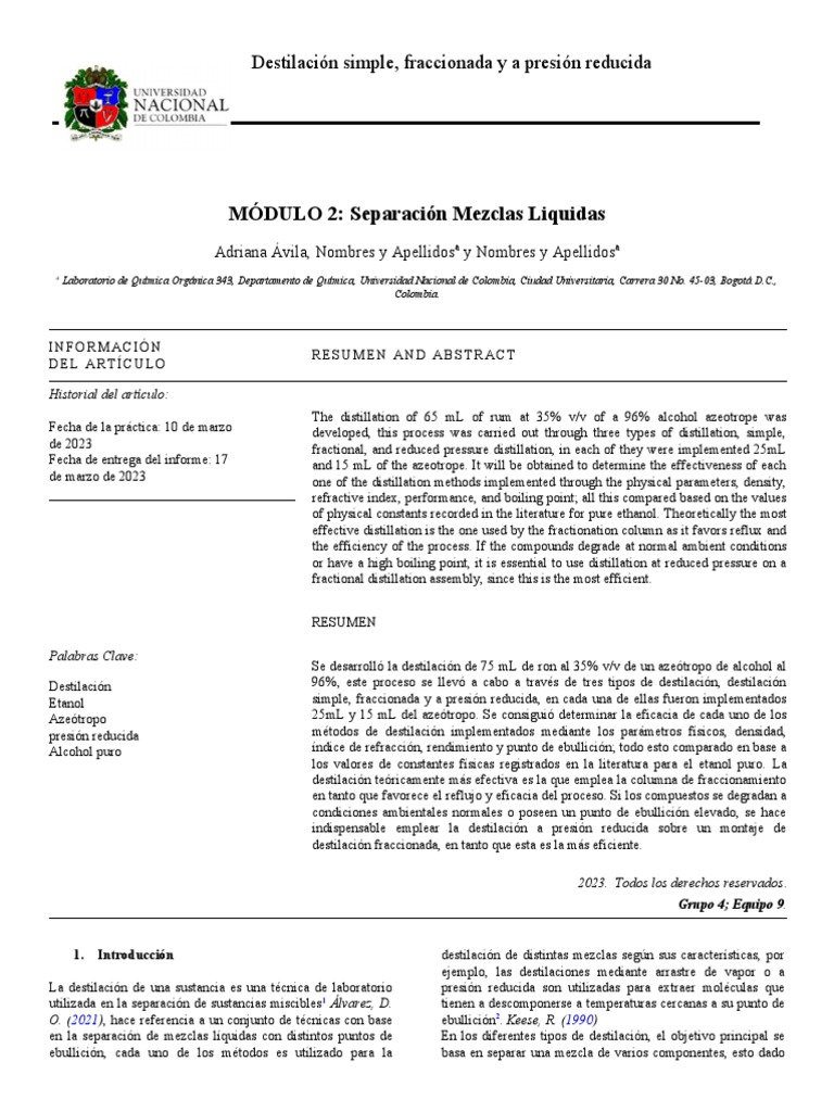 desarrollo de una excelente práctica. 7.1 Destilación simple y fraccionada
