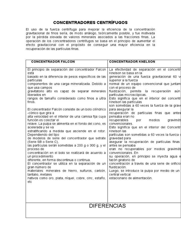 operación de los concentradores centrífugos se basa en el principio de aumentar el