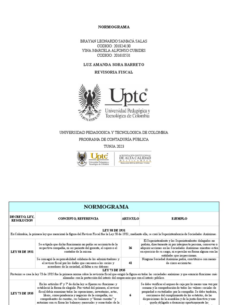 Posterior se crea la ley 73 de 1935 fue la primera norma sobre la revisoría fiscal que exigió la figura en todas las sociedades anónimas y que enuncio funciones más
