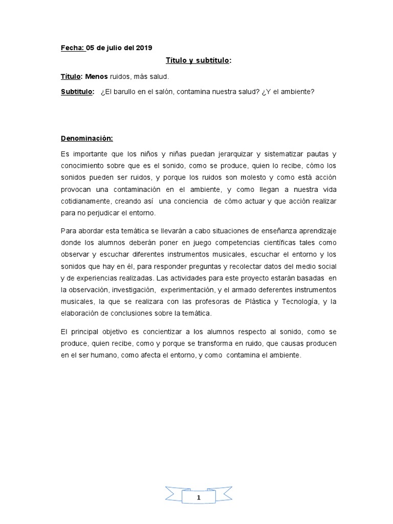 Subtitulo: ¿El barullo en el salón, contamina nuestra salud? ¿Y el ambiente?