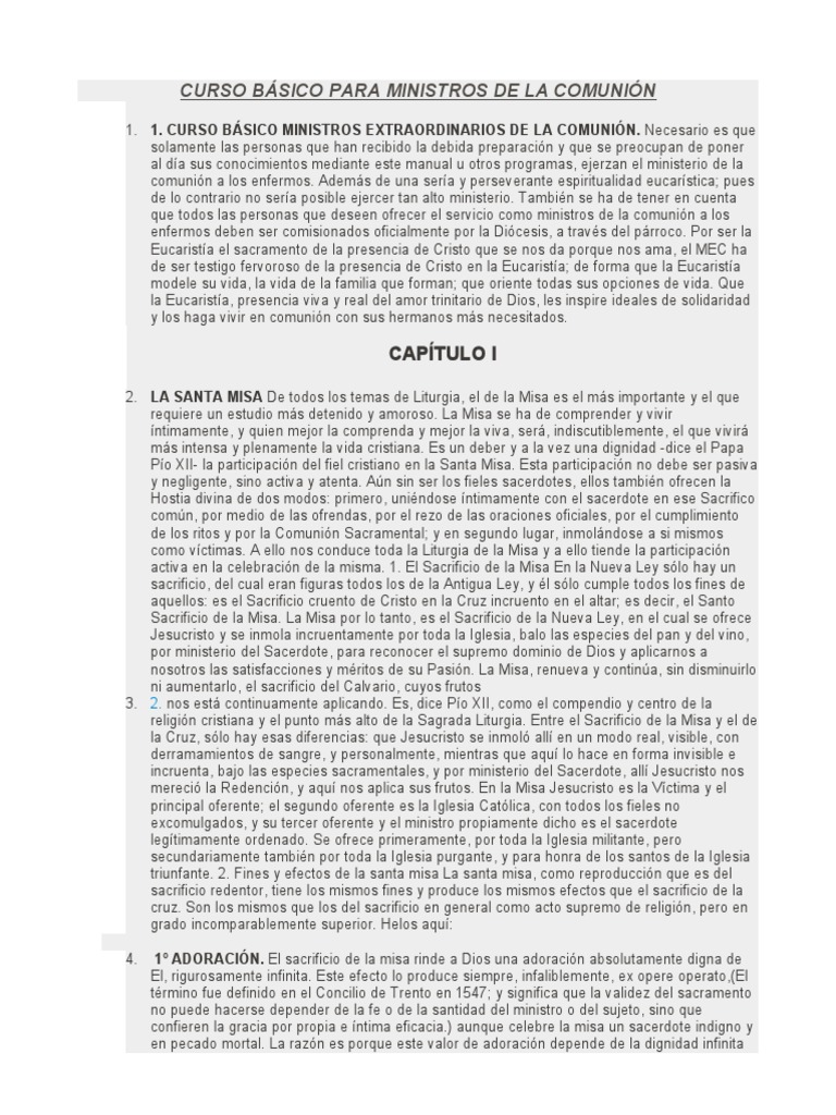 CURSO BÁSICO PARA MINISTROS DE LA COMUNIÓN