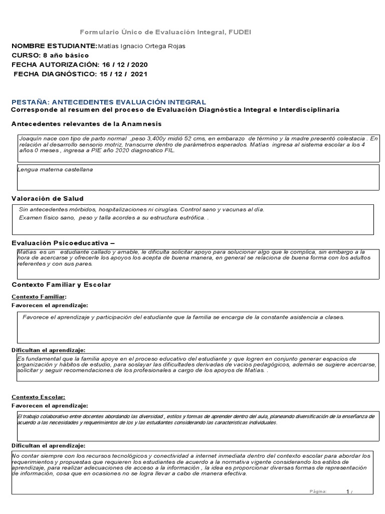 Formulario Único de Evaluación Integral, FUDEI
