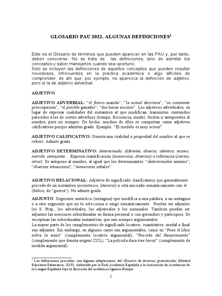 Este es el Glosario de términos que pueden aparecer en las PAU y, por tanto,