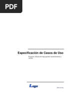 atributos obligatorios. El listado de Casos de Uso contiene el número y nombre de cada