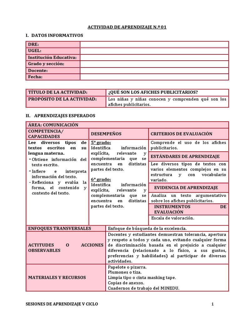 SESIONES DE APRENDIZAJE V CICLO 1