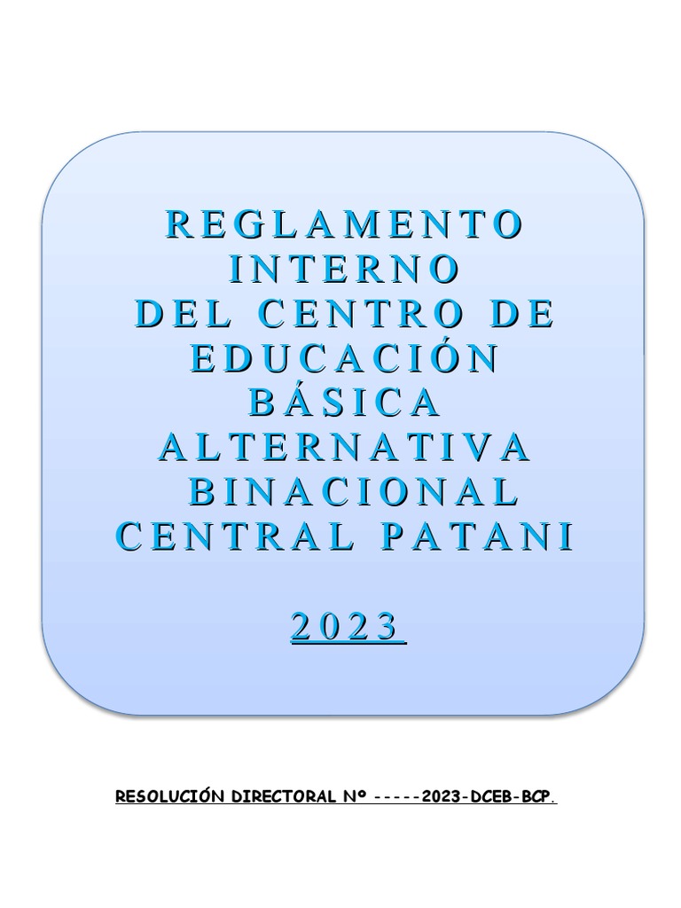 VISTO: El Reglamento Interno del Centro de Educación Básica Alternativa Binacional Central Patani.