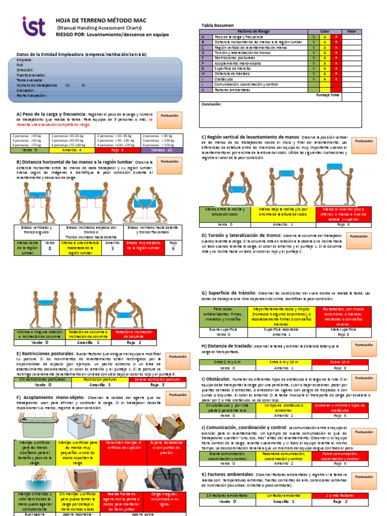 abastecimiento desordenada), el color es amarillo y el puntaje 1. Si la postura se Verde 0 Amarillo 1 Rojo 3