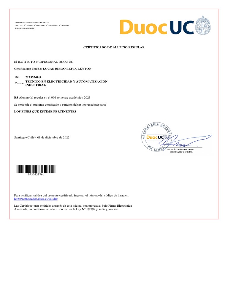 CERTIFICADO DE ALUMNO REGULAR