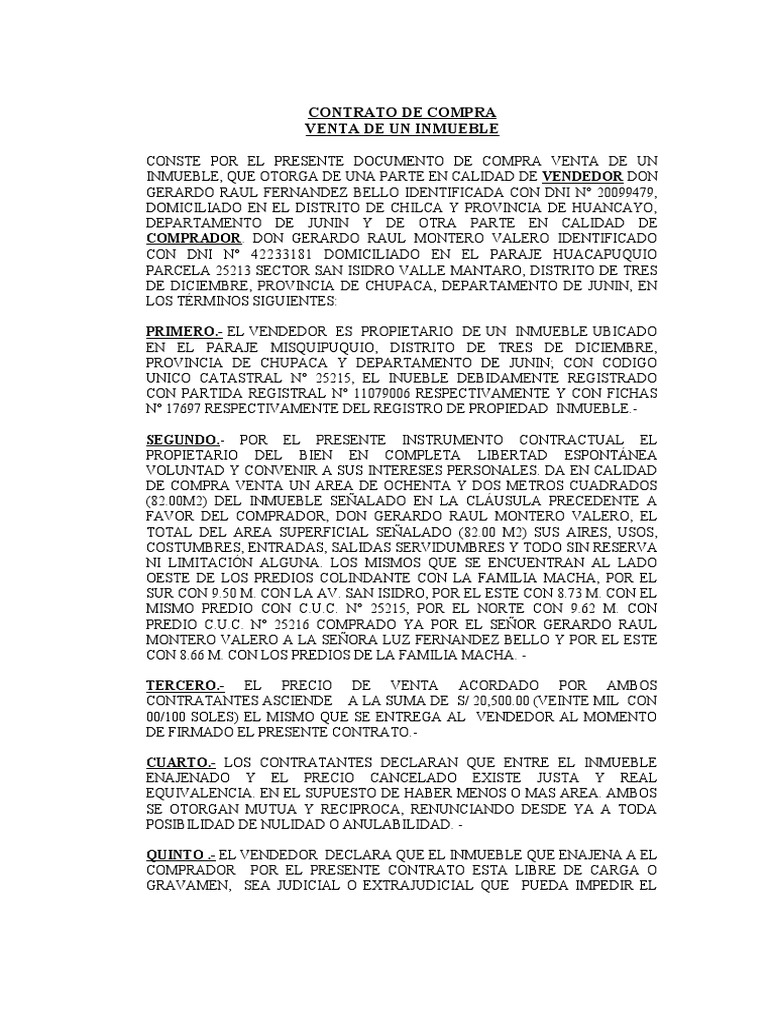 CONSTE POR EL PRESENTE DOCUMENTO DE COMPRA VENTA DE UN