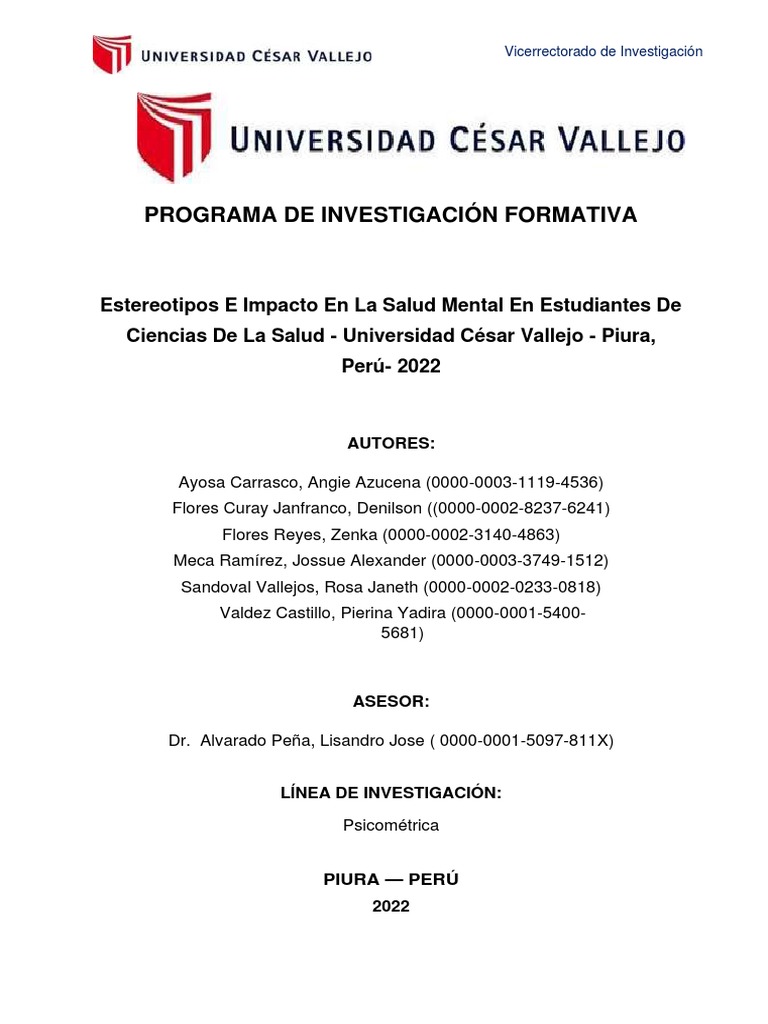 Palabras claves: estereotipos sociales, salud mental, estomatología, Piura.