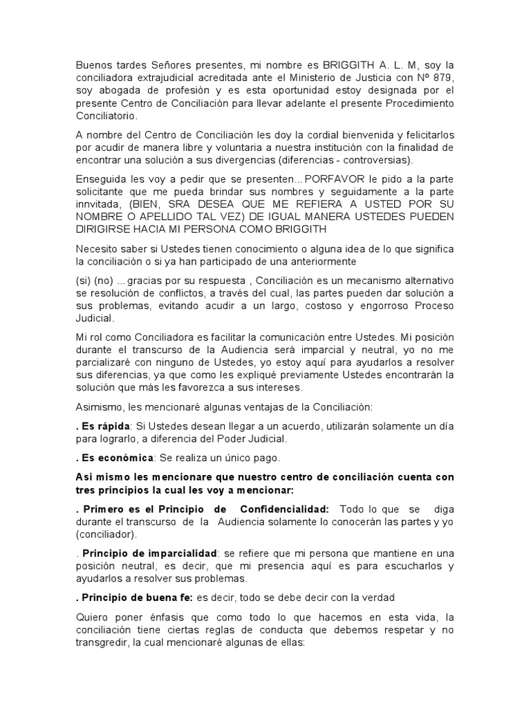 Asi mismo les mencionare que nuestro centro de conciliación cuenta con