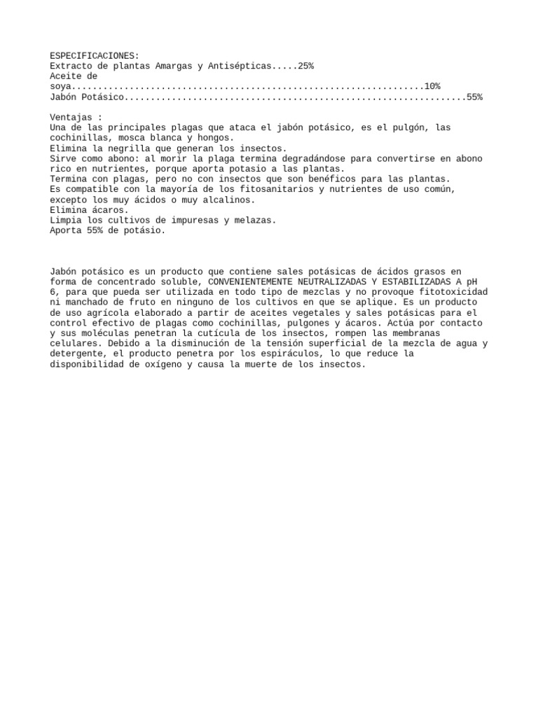 de uso agrícola elaborado a partir de aceites vegetales y sales potásicas para el
