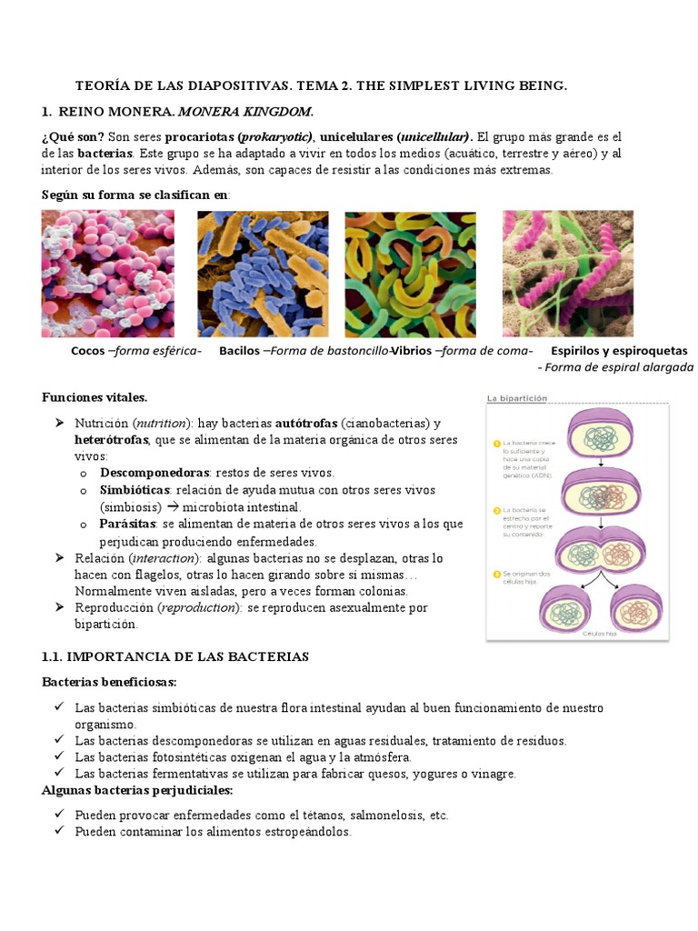 TEORÍA DE LAS DIAPOSITIVAS. TEMA 2. THE SIMPLEST LIVING BEING.