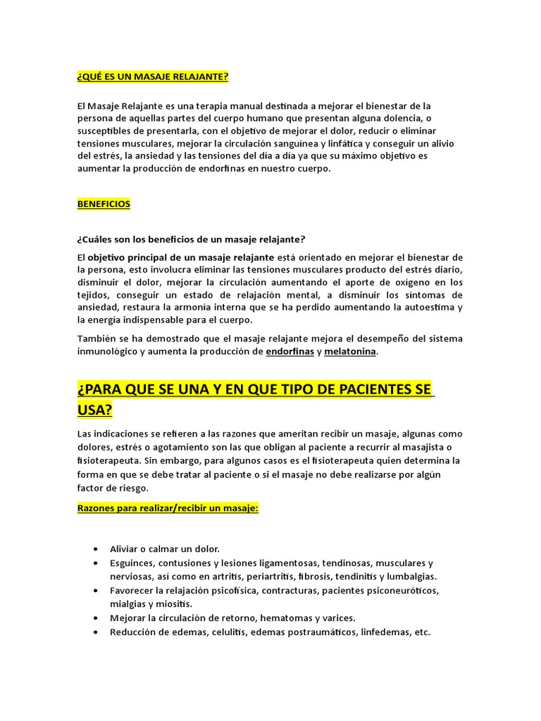 forma en que se debe tratar al paciente o si el masaje no debe realizarse por algún