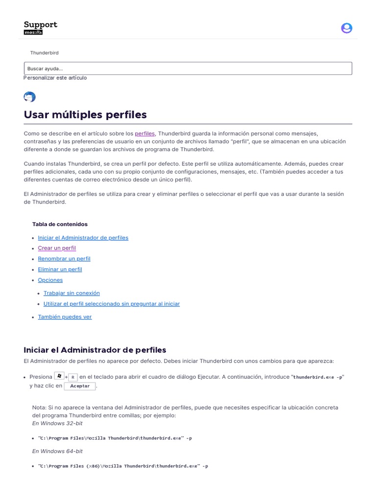 Cuando instalas Thunderbird, se crea un perfil por defecto. Este perfil se utiliza automáticamente. Además, puedes crear