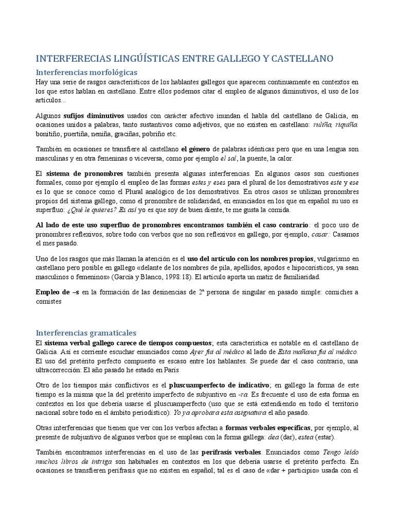 INTERFERECIAS LINGÚ ÍSTICAS ENTRE GALLEGO Y CASTELLANO