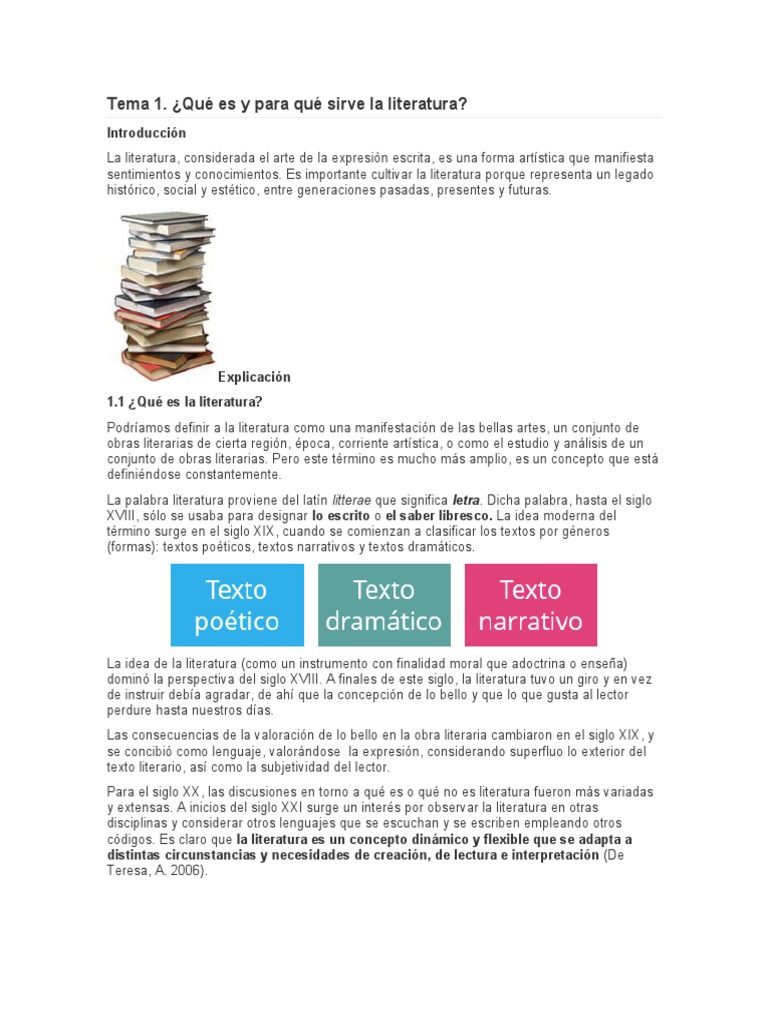 sentimientos y conocimientos. Es importante cultivar la literatura porque representa un legado