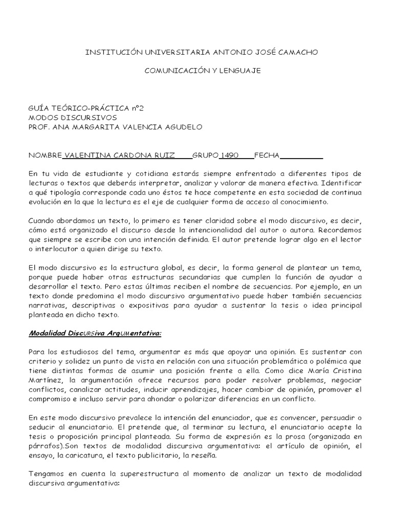 NOMBRE VALENTINA CARDONA RUIZ GRUPO 1490 FECHA