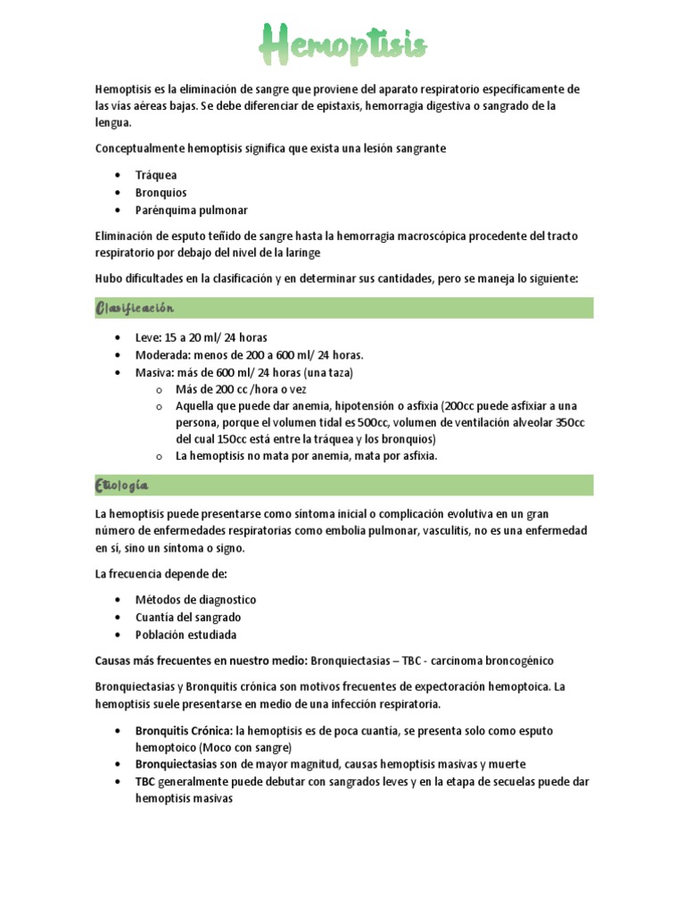 hemoptisis suele presentarse en medio de una infección respiratoria.