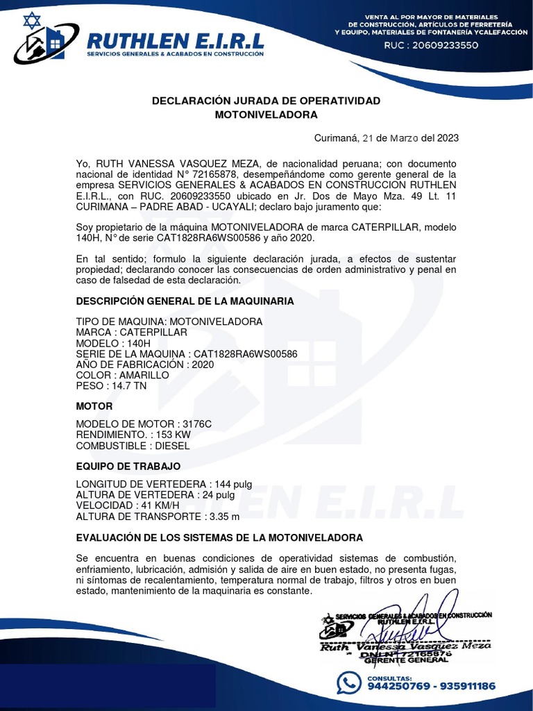 nacional de identidad N° 72165878, desempeñándome como gerente general de la