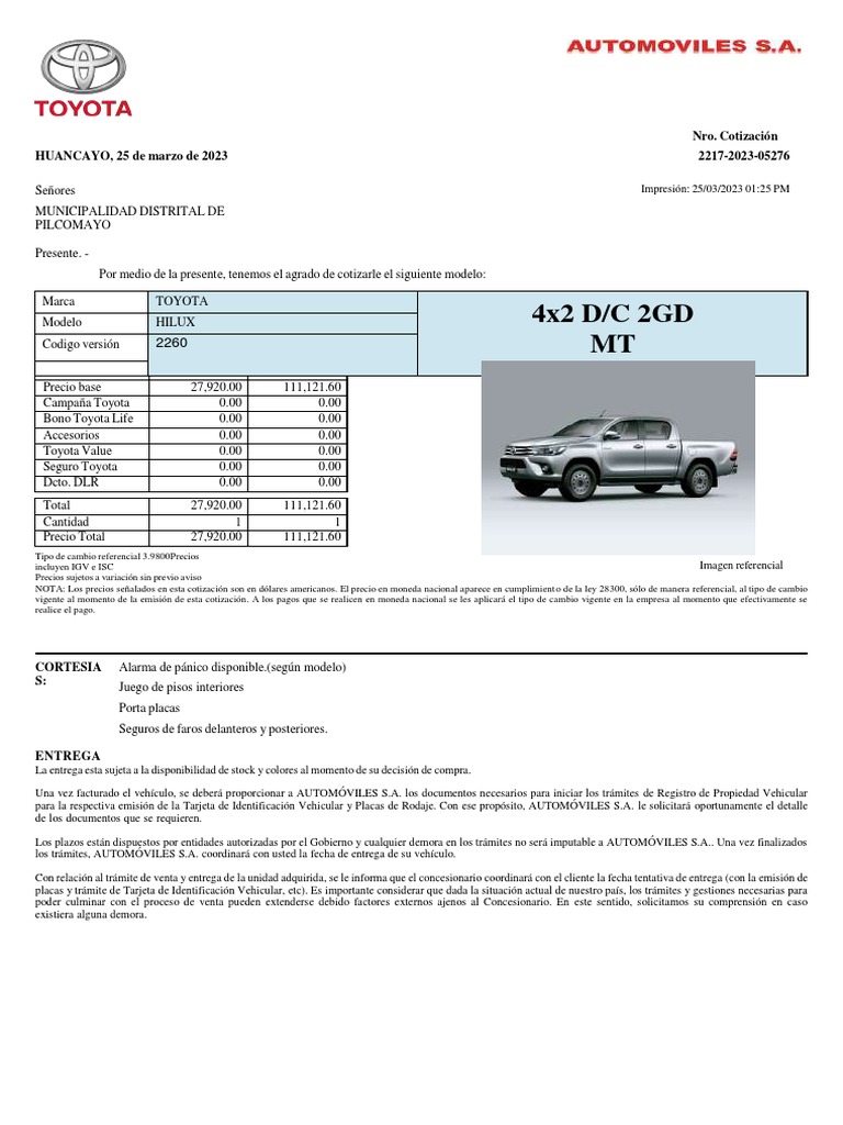 Nombre del modelo HILUX 4X2 D/C 2GD