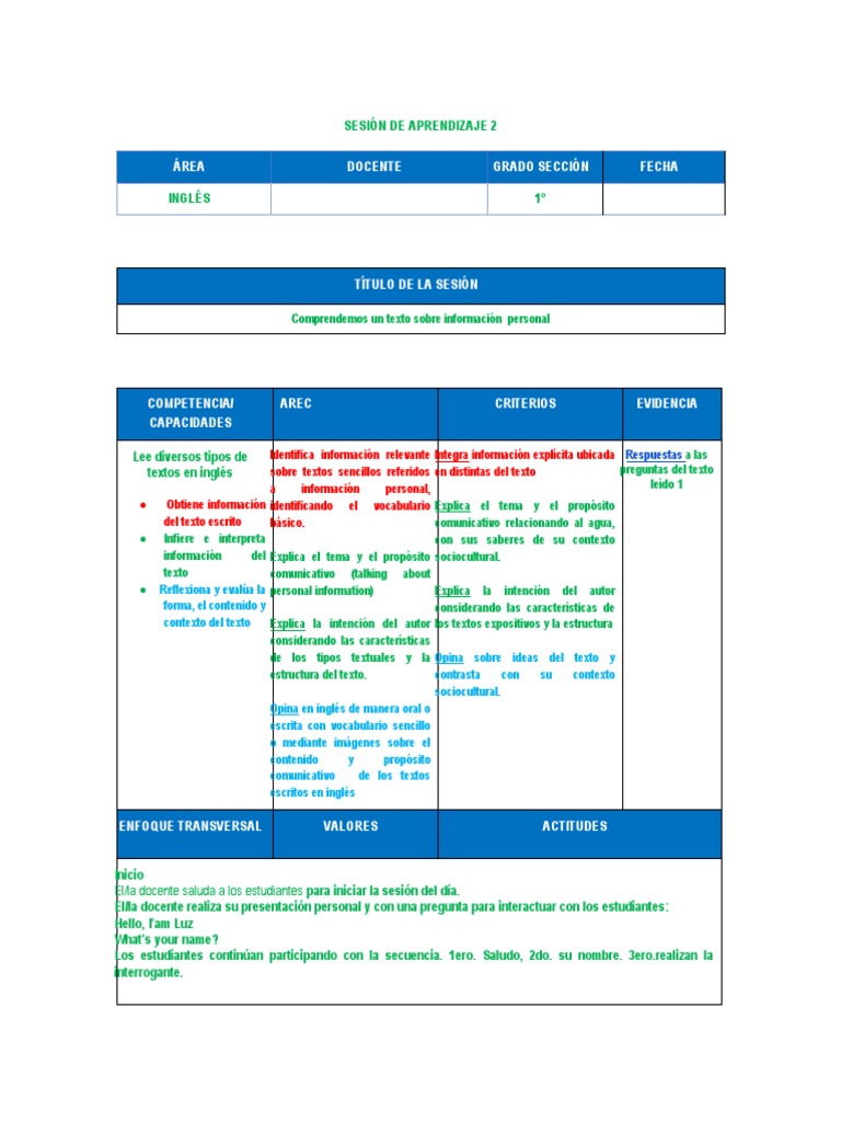SESIÓN DE APRENDIZAJE 2