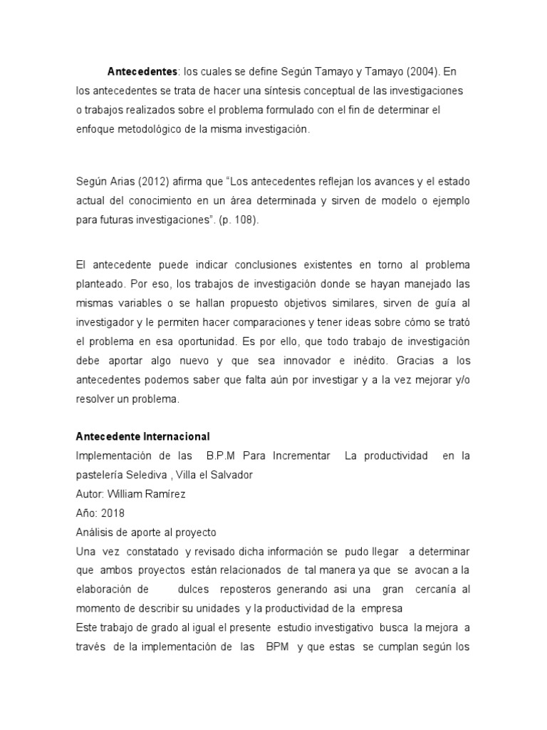 antecedentes podemos saber que falta aún por investigar y a la vez mejorar y/o