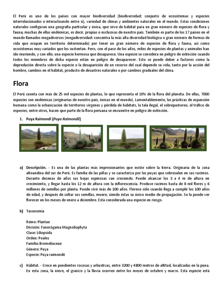 especies, entre otros, hacen que parte de la flora peruana se encuentre en peligro de extinción.