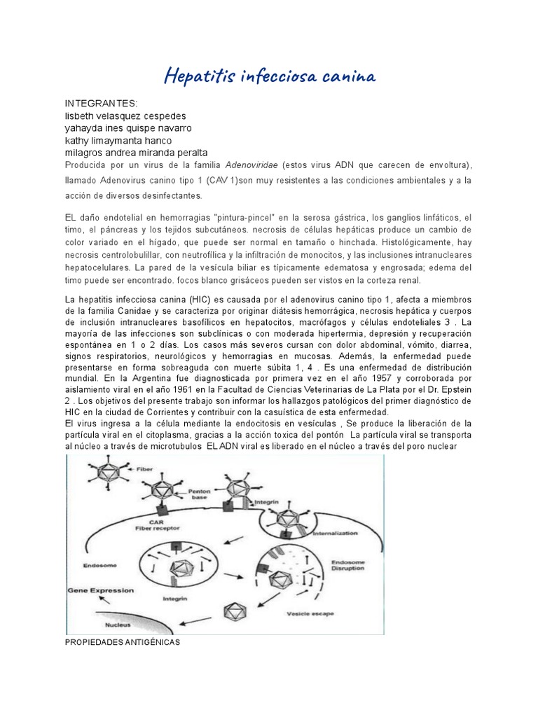 aguda.La hepatitis infecciosa canina está bien controlada gracias a los protocolos de vacunación. es