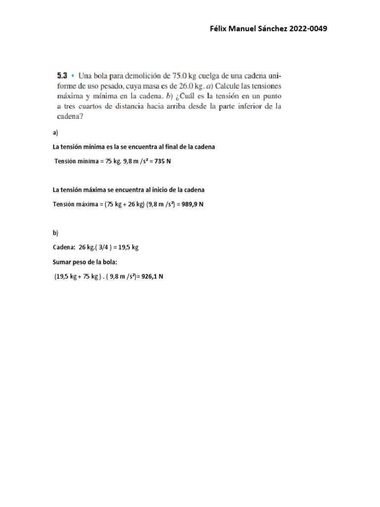 Tensión mínima = 75 kg. 9,8 m /s² = 735 N