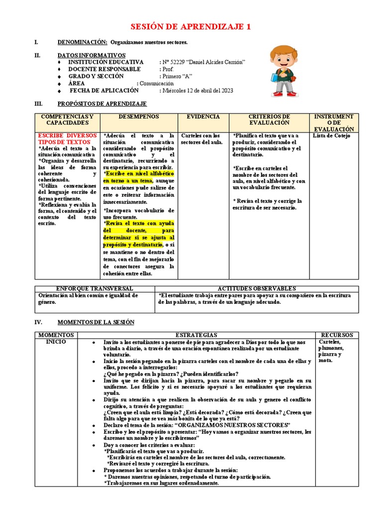 SESIÓN DE APRENDIZAJE 1