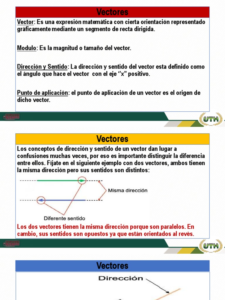 Los conceptos de dirección y sentido de un vector dan lugar a