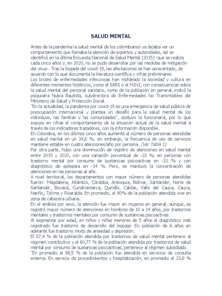 expuso en cifras el comportamiento de la situación actual de la salud mental a