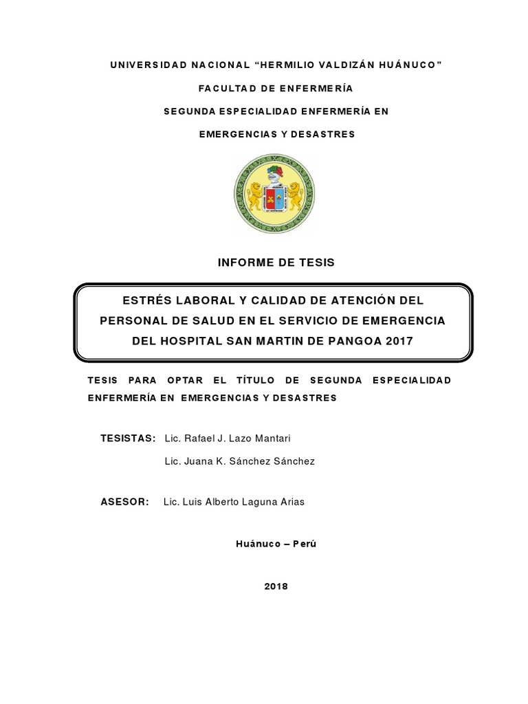 emergencia del hospital Sa n Martin de Pangoa. Donde el estrés laboral se