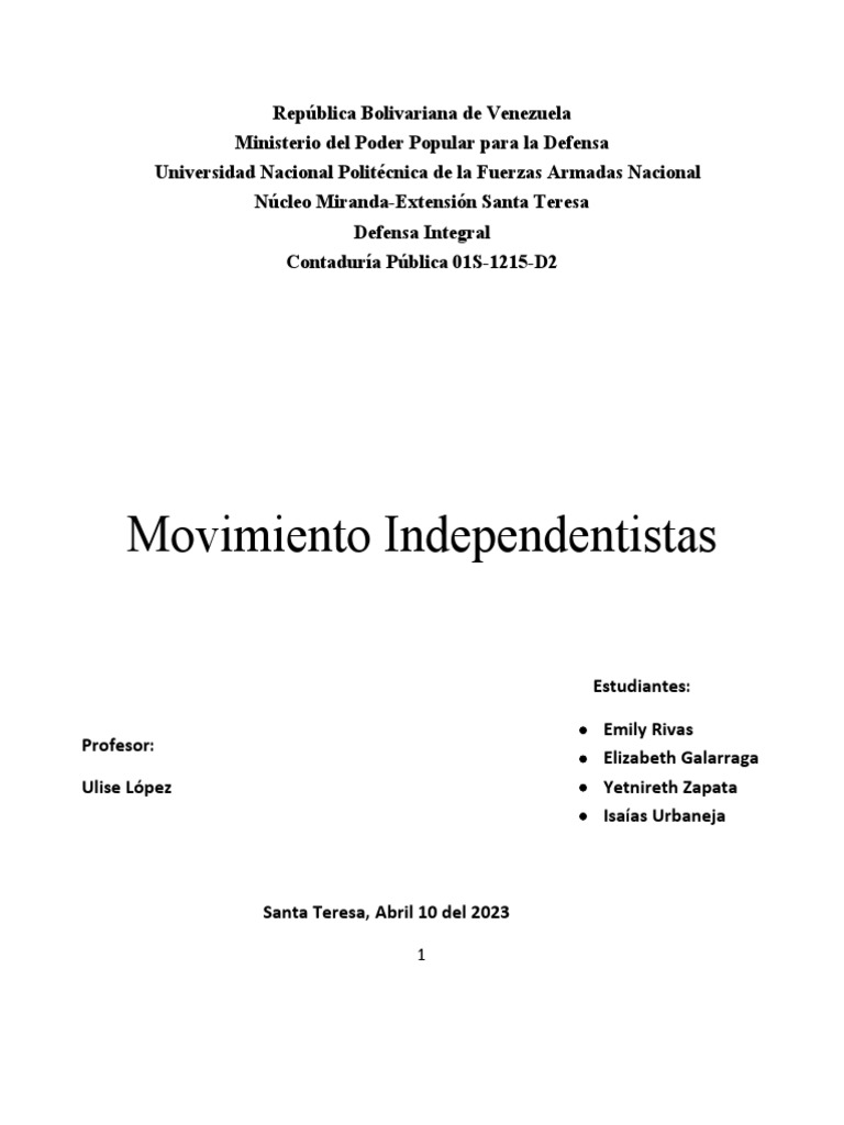 dificultades. Los que se oponían a la independencia de Venezuela, llamados los