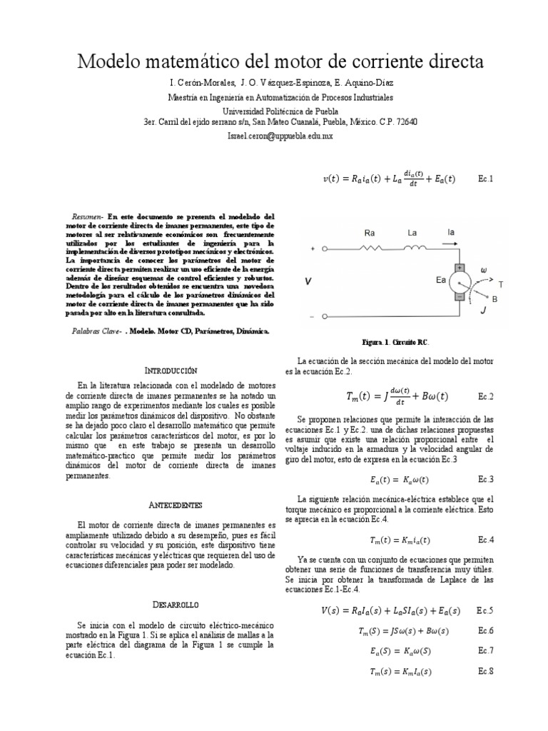 Palabras Clave- . Modelo. Motor CD, Parámetros, Dinámica.